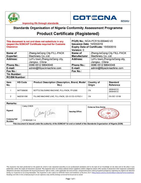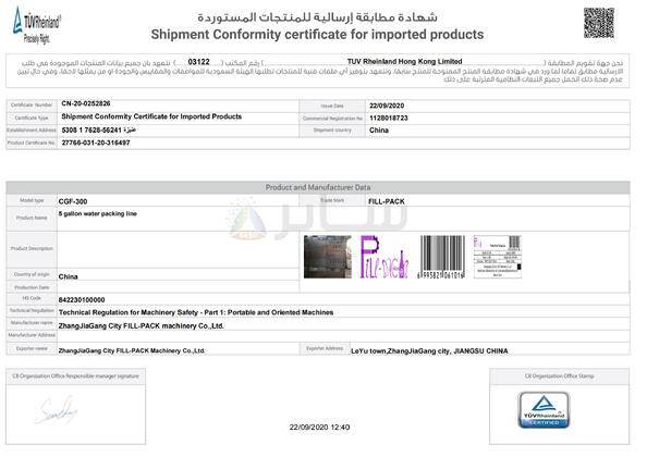 | Estándar: | Shipment Conformity certificate |