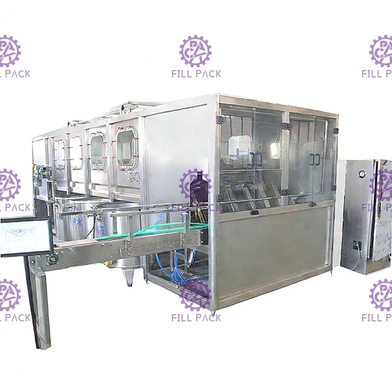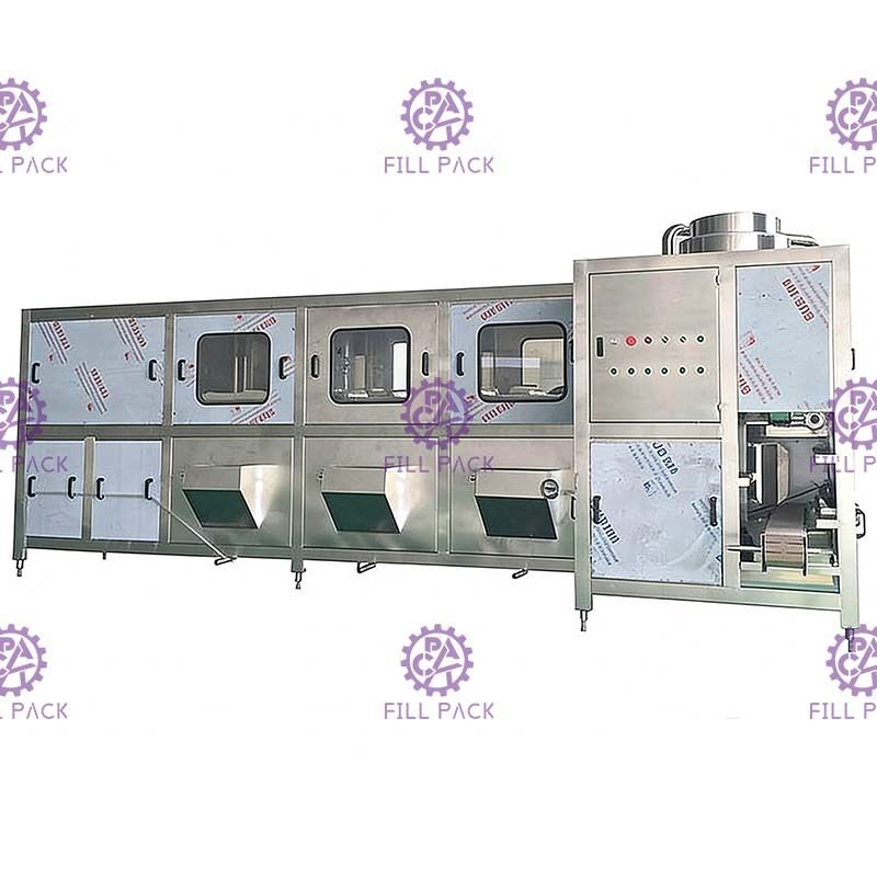 1. Este equipo de llenado de botellas se utiliza principalmente para lavar, llenar y tapar botellas de PET de 5 galones.
