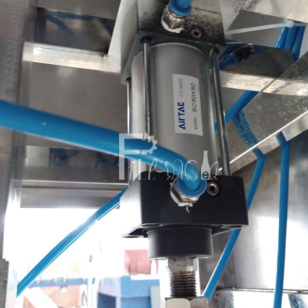 4) La voluntad de relleno del valor conducida por el cilindro para insertar en el barril y el comienzo a llenar, tiempo de relleno es controlada por el PLC, y el tiempo de relleno es ajustable por el panel de control según el relleno de la superficie líquida.