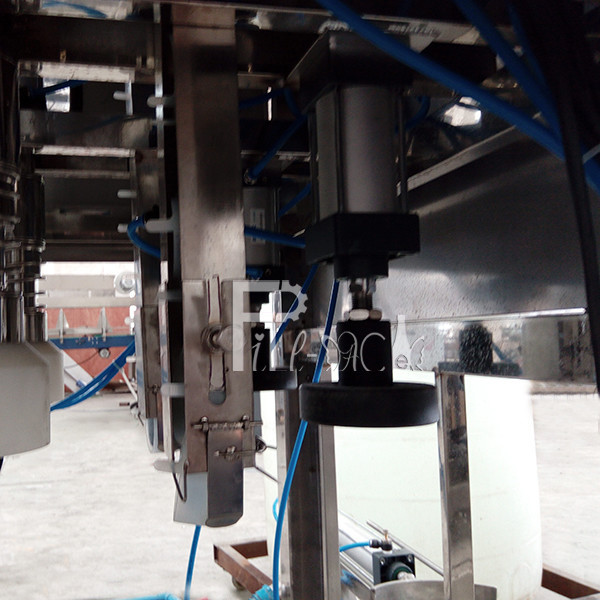 El equipo de relleno de 5 galones se puede dividir en 3 pasos: el lavarse, el relleno y el capsular, suman 36 estaciones de trabajo, proceso del funcionamiento como abajo: