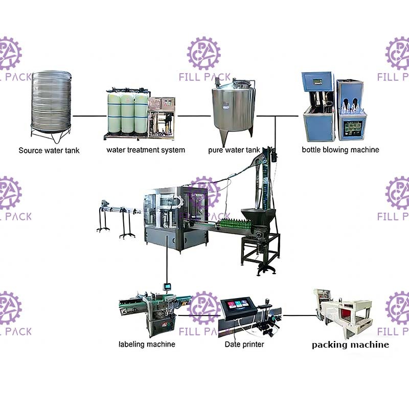 1La máquina PET 3 en 1 de enjuague y relleno de tapas se utiliza en la producción de bebidas sin soda de agua mineral pura envasada en botellas de poliéster.