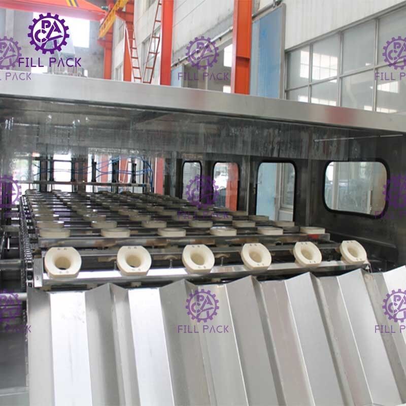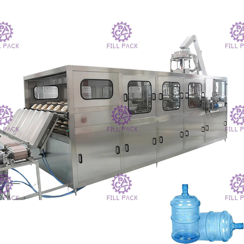 Todo el proceso se combina con 3 máquinas de diferentes funciones en un solo bastidor. Control general de PLC, varias fotoelectricidades y varios cilindros; Capacidad: 800-900 botellas por hora-5L